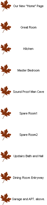 Our New “Home” Page | Great Room | Kitchen | Master Bedroom | Sound Proof Man Cave | Spare Room1 | Spare Room2 | Upstairs Bath and Hall | Dining Room Entryway | Garage and APT. above.
